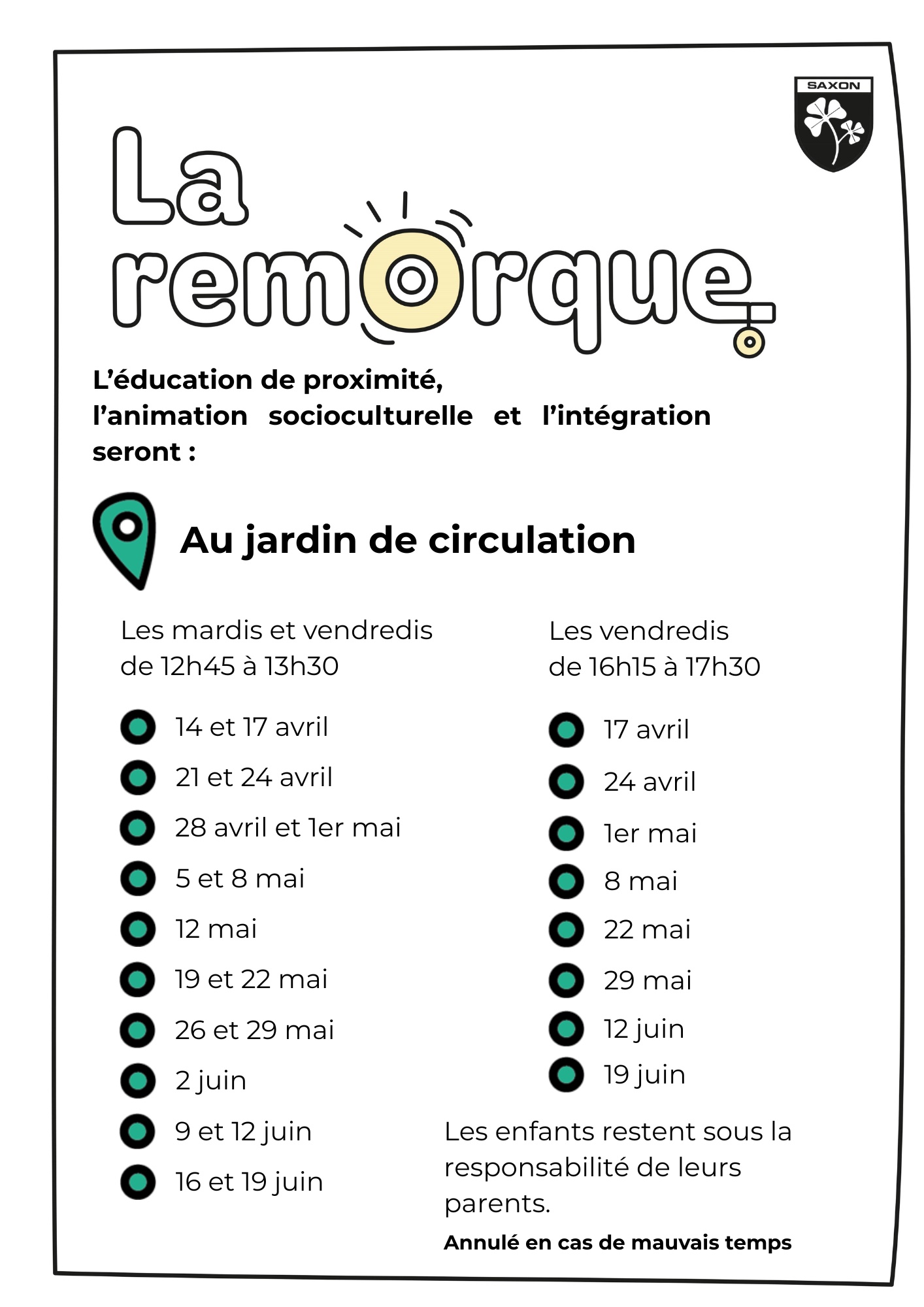 Pensée comme un point de ralliement, la remorque s’installe dans les parcs, les cours d’école ou les espaces publics pour aller à la rencontre de la population. Elle propose des activités ludiques et créatives.